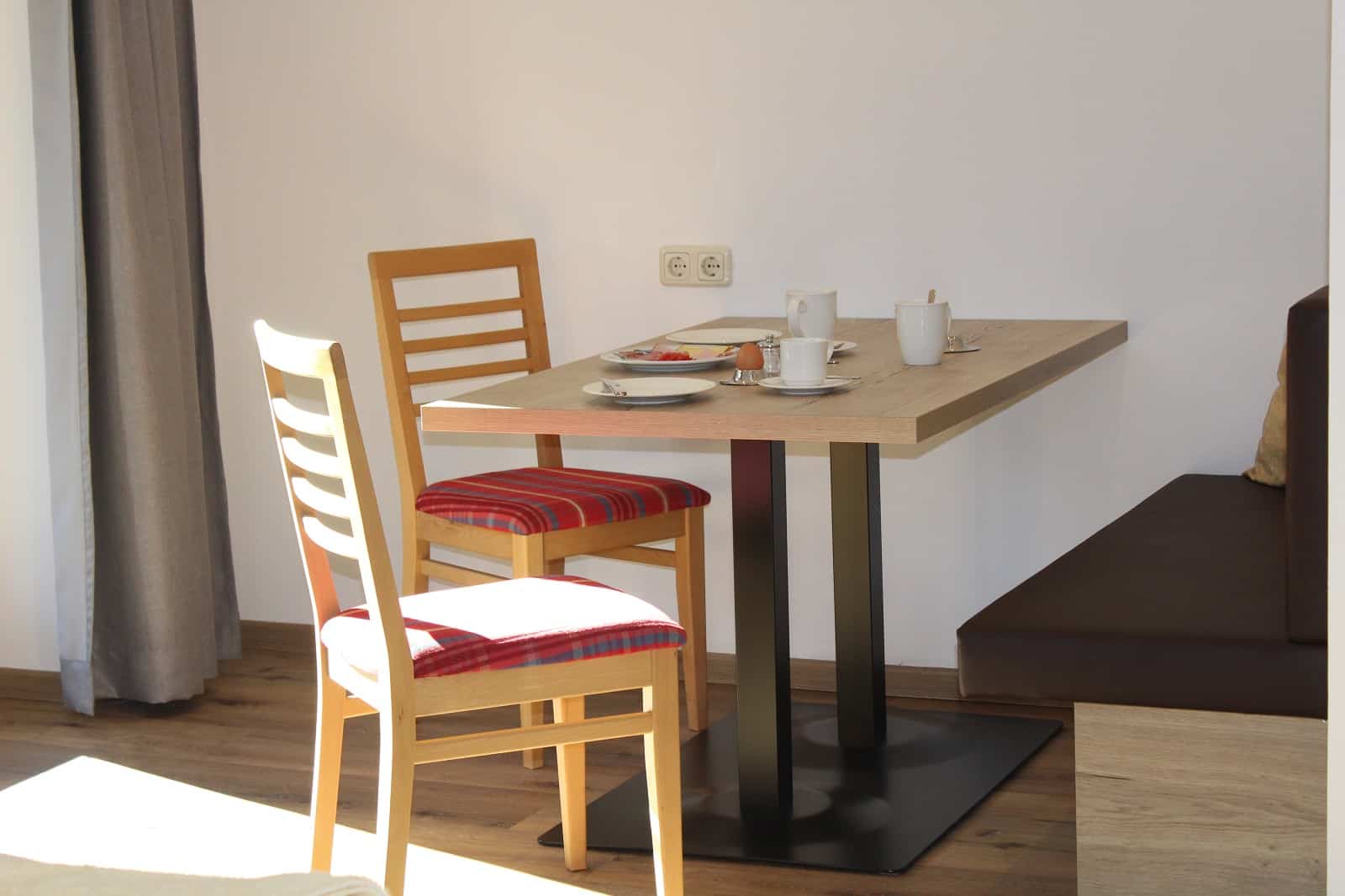 Apartment No. 12 consists of livingroom with a pull-out double couch, Flat TV, kitchenette and dinning table, balkony, shower/toilet and a separate bedroom with balkony. For 2 – 4 persons.